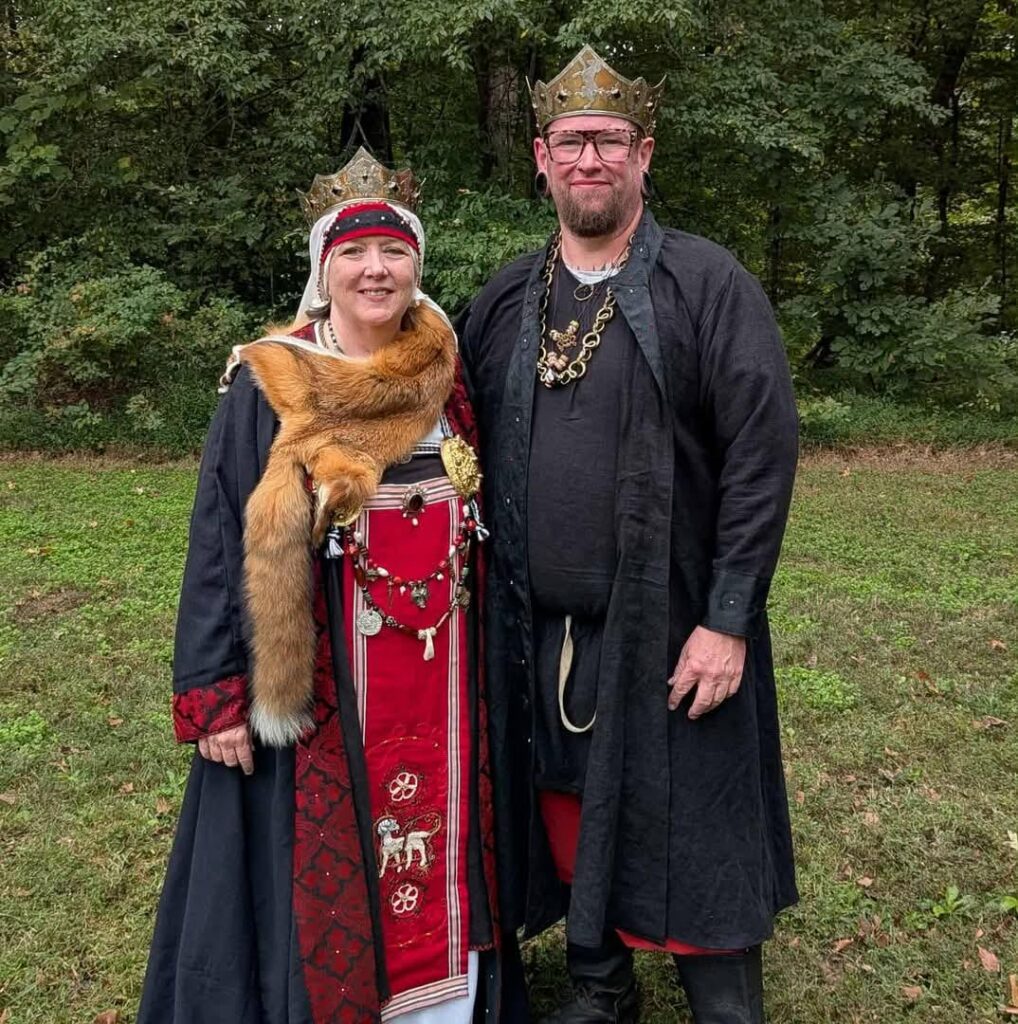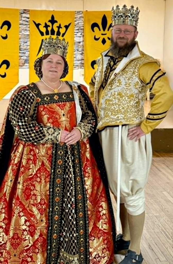 Greetings from King Creppin and Queen Cristyana of Ansteorra. Welcome Great Populace to the Known World’s greatest war without enemies! During this exciting week, you’ll experience noble feats, inspiring arts and sciences, challenging contests, and lively revelry. We hope your travels were smooth and you’re ready for fun. We encourage you to make new friends across Kingdoms and renew old ones, learn a new skill, and take advantage of all that Gulf Wars has to offer. If you have time, please consider volunteering. It’s a wonderful way to serve your Kingdom and meet new people. Our volunteers make this event possible—thank you for your generosity! Join us for the Ansteorran Chili Social, now with tacos! Whether you prefer mild, spicy, or fiery flavors, our fixin’ bar has something for every palate. As Gulf Wars comes to a close, we hope you leave with cherished memories and unique wares from Merchants Row to enjoy until we meet again.